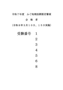 令和7年度 ふぐ処理技術認定審査合格者の発表について